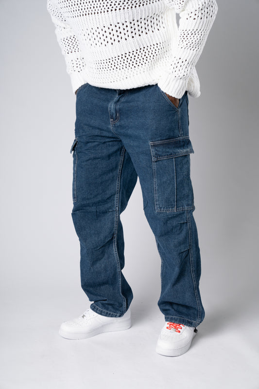 Cargo Jeans Denim Tasche Laterali